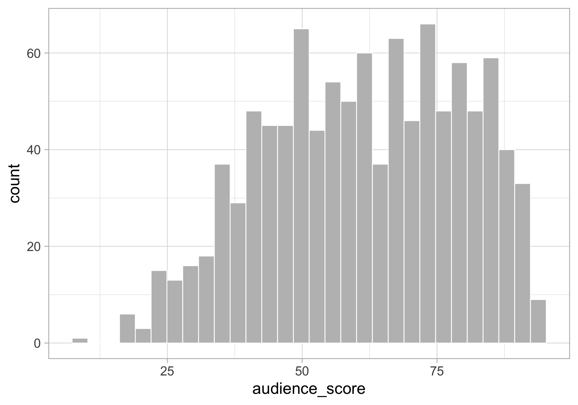 $ AudienceScore <dbl> 73, 82, 71, 82, 51, 72, 62, 47, 47, 63, 82, 51, 63, 9…