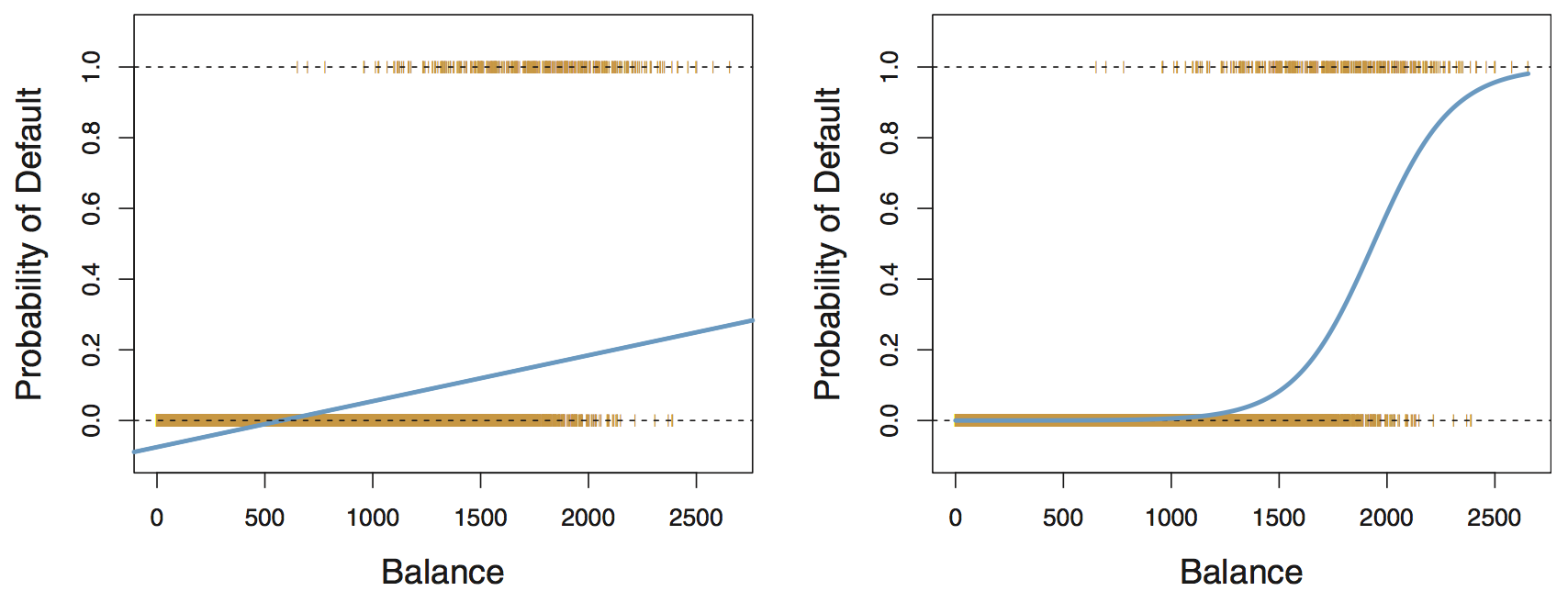 \[\mathbb E[Y \mid x] = \frac{e^{\beta_0 + \beta_1 x_1 + \cdots + \beta_p x_p}}{1 + e^{\beta_0 + \beta_1 x_1 + \cdots + \beta_p x_p}}\]