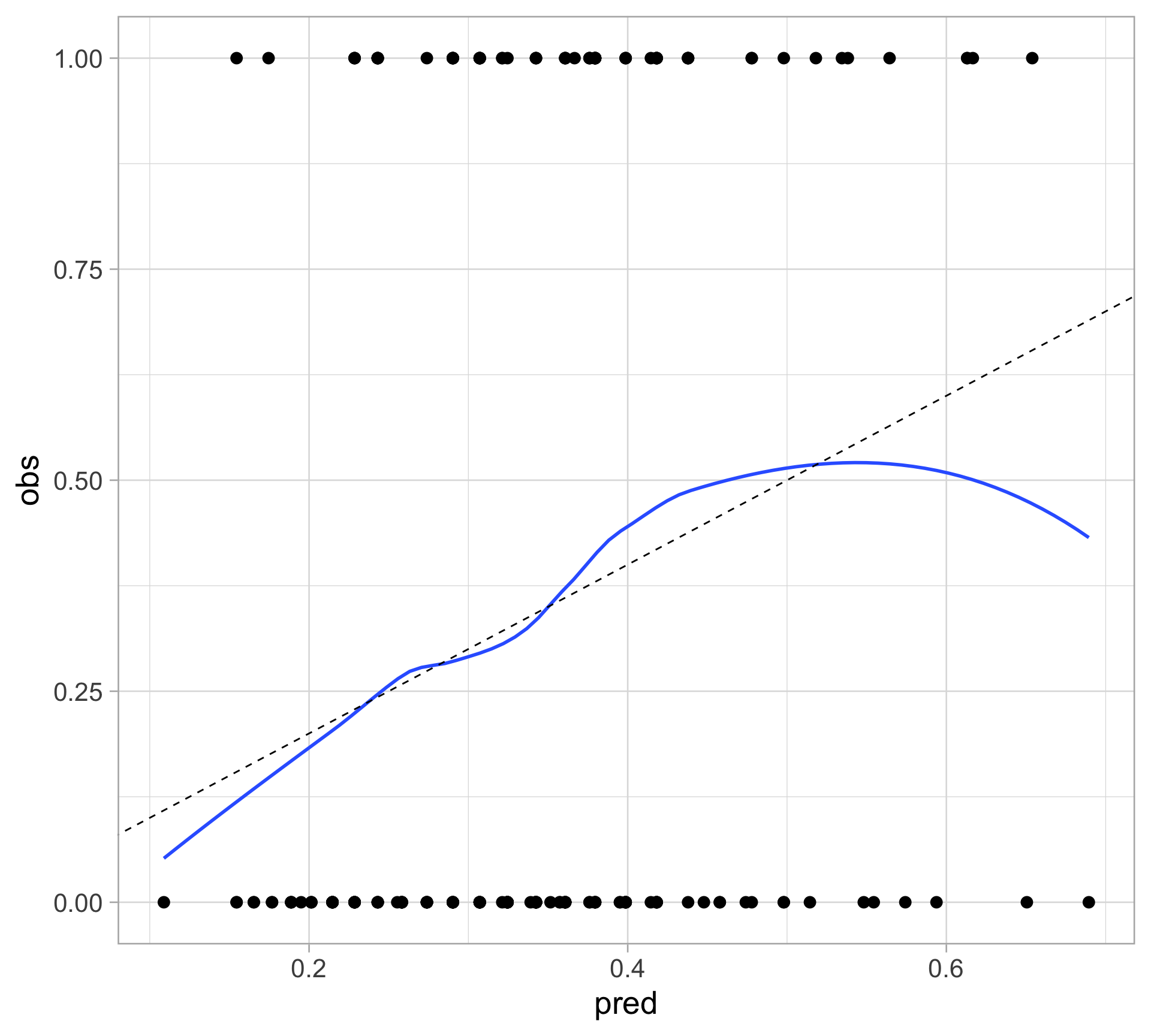 Plot the observed outcome against the fitted probability, and apply a smoother