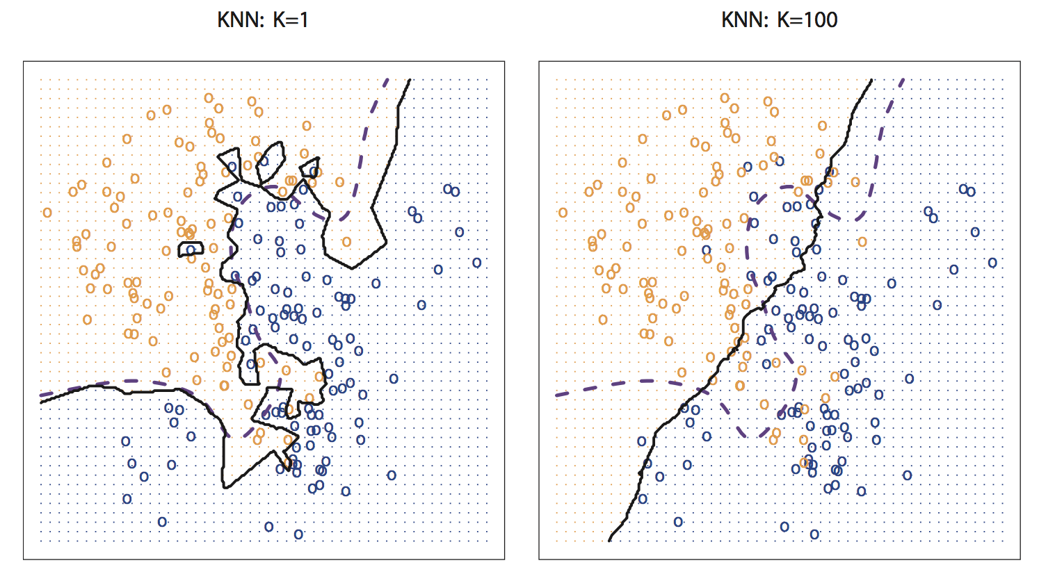 \(k\)-NN classification: most common class among the \(k\) nearest neighbors (“majority vote”)