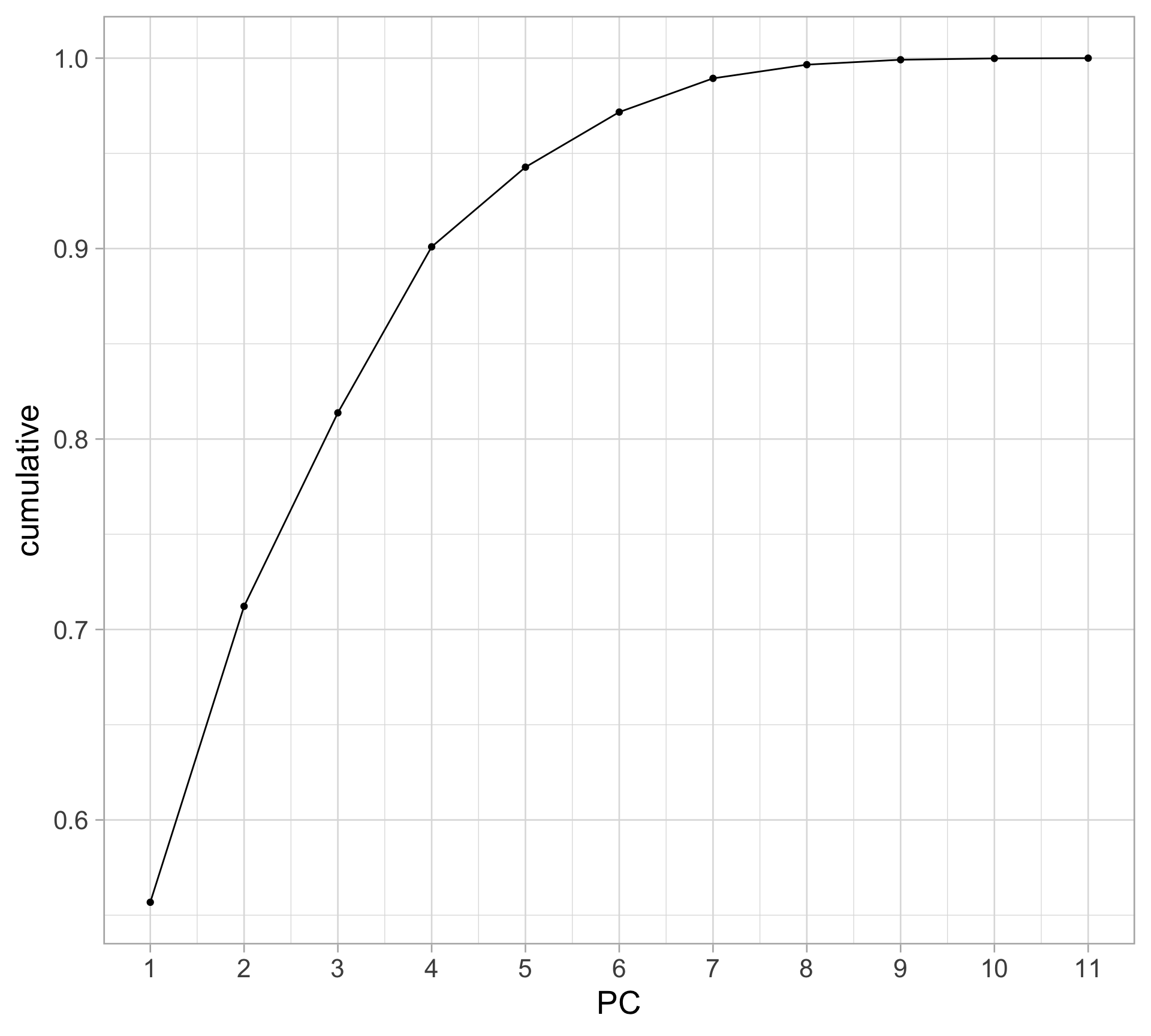 ggplot(aes(x = PC, y = cumulative)) +
